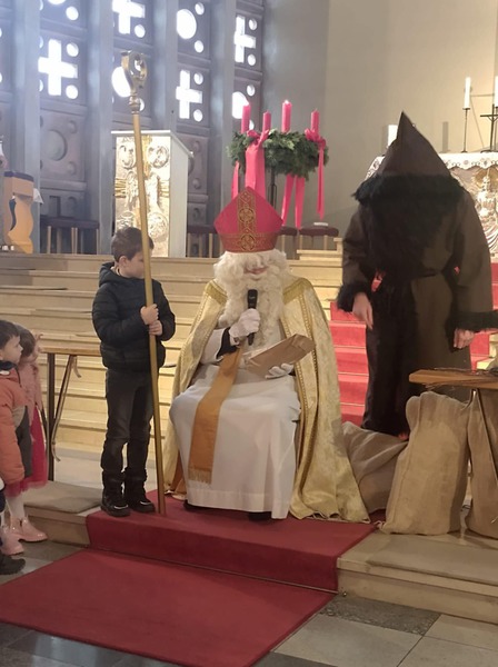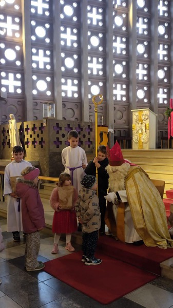 7 grudnia 2025 roku, po Mszy Świętej, nasza Wspólnota Misyjna gościła św. Mikołaja. Spotkał się on z najmłodszymi parafianami, obdarowując każde dziecko drobnym upominkiem i zamieniając z nimi kilka